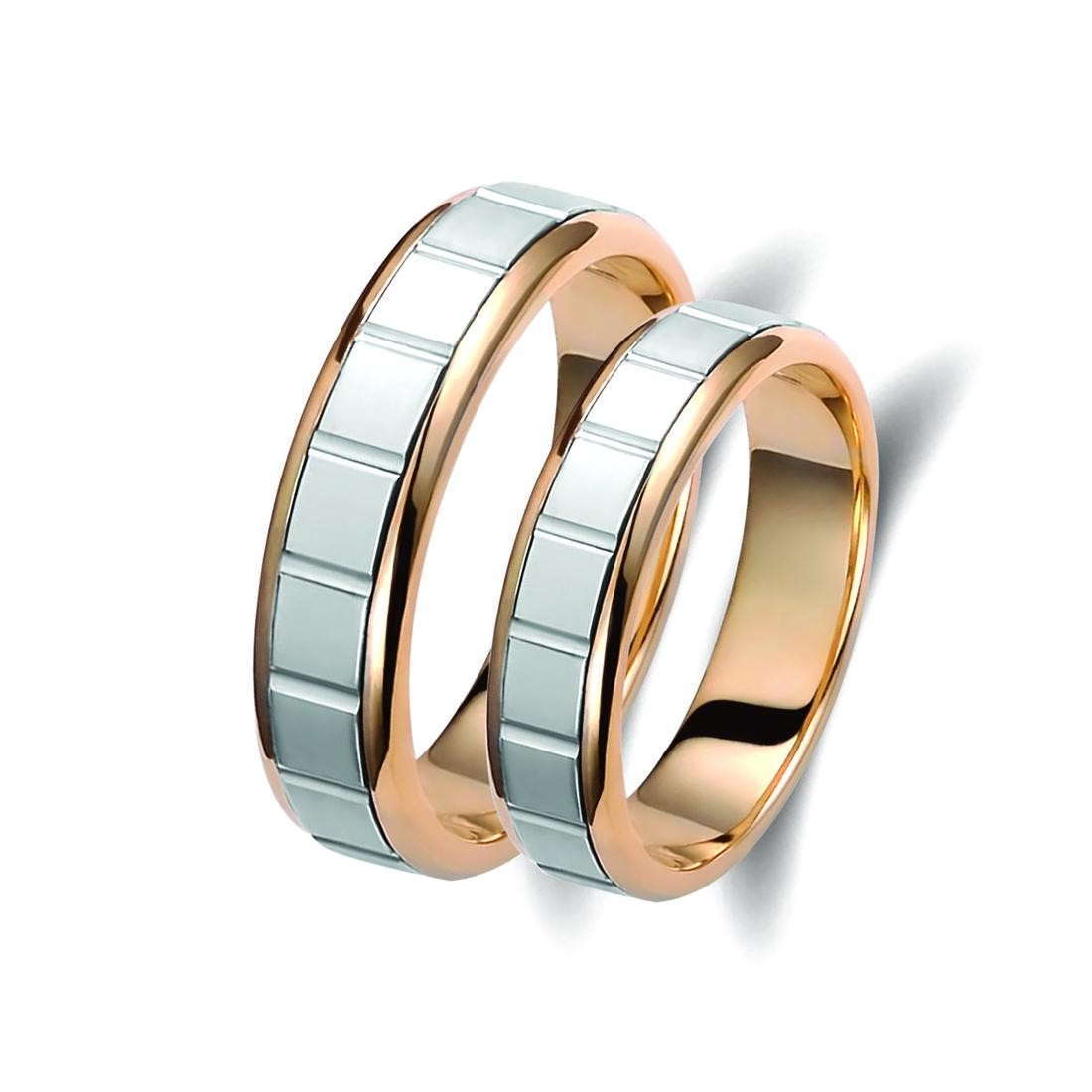 Ζευγάρι βέρες από λευκό και ροζ χρυσό 14 καρατίων.