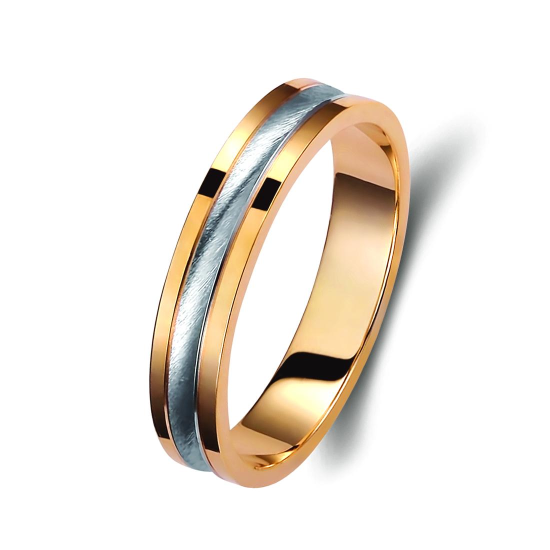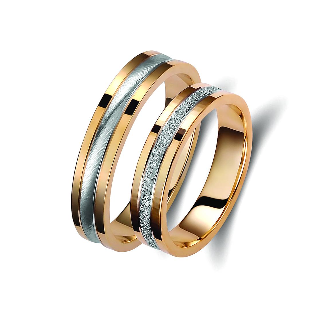 Ζευγάρι βέρες δίχρωμες από χρυσό και λευκόχρυσο, σε ice mat, 14 καρατίων. Σχέδιο 371a-aa