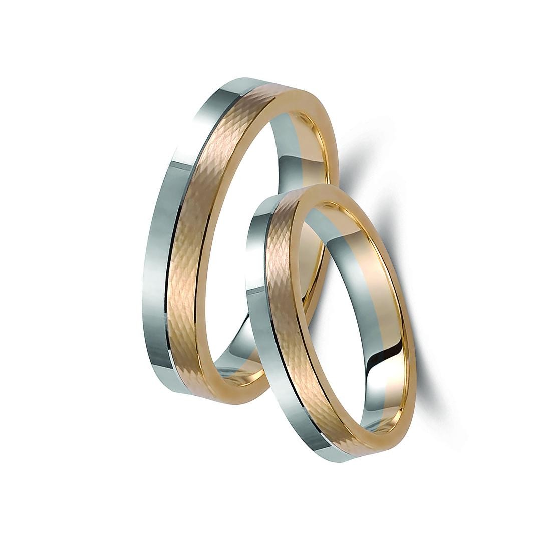 Ζευγάρι βέρες δίχρωμες ροζ χρυσό και λευκόχρυσο 14 καρατίων.Σχέδιο 352p-pa