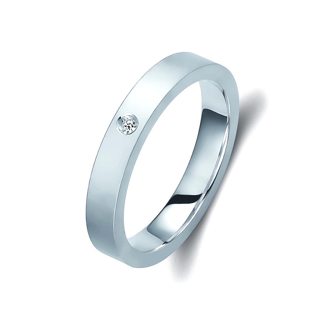 ευγάρι βέρες λευκόχρυσες 14 καρατίων (k585), η γυναικεία με πέτρα ζιργκόν.