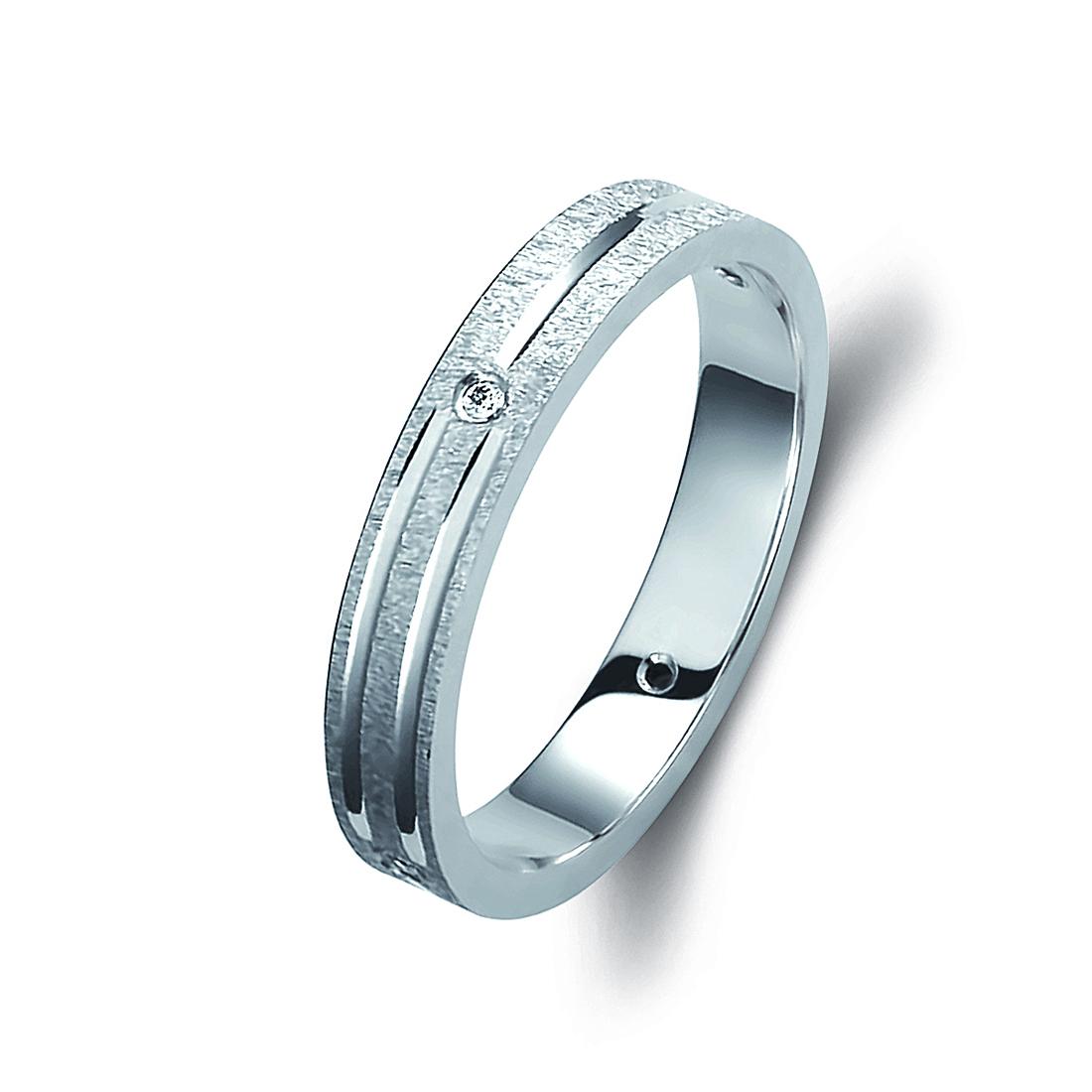 Ζευγάρι βέρες λευκόχρυσες 14 καρατίων, η γυναικεία με πέτρα ζιργκόν. Σχέδιο 346b-ba