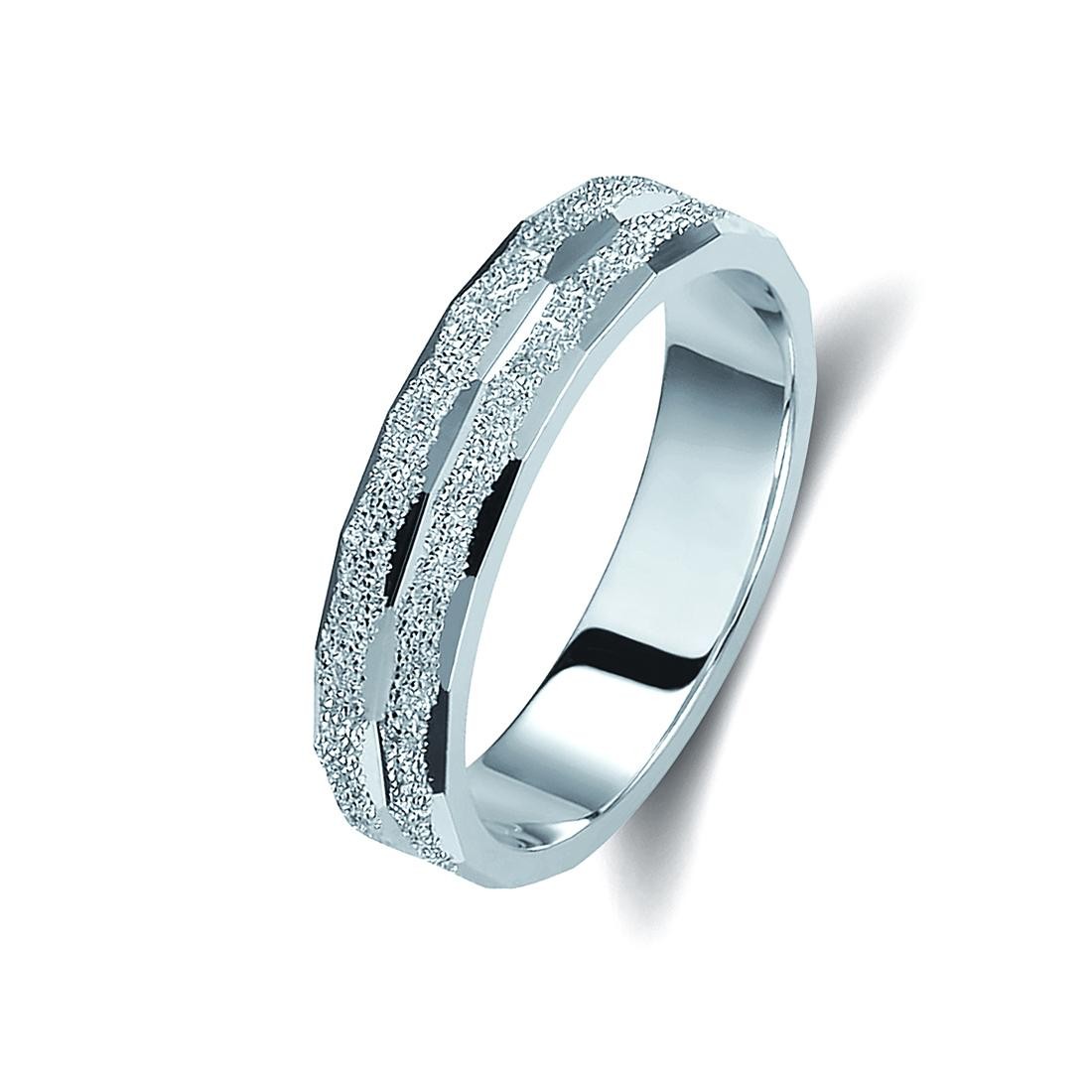Ζευγάρι βέρες δίχρωμες από χρυσό και λευκόχρυσο, σε ice mat, 14 καρατίων. Σχέδιο 371a-aa