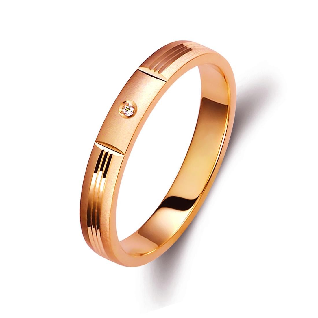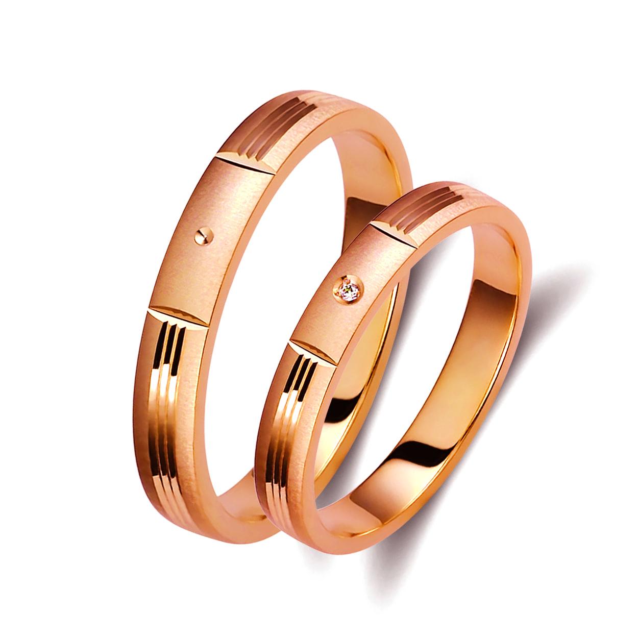 Ζευγάρι βέρες ροζ χρυσό 14 καρατίων (k585), η γυναικεία με διαμάντι βάρους 0,01ct (μπριγιάν).