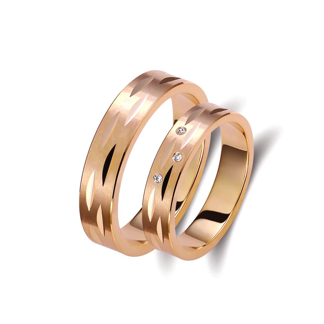 Ζευγάρι βέρες ροζ χρυσό 14 καρατίων, η γυναικεία με πέτρα ζιργκόν. Σχέδιο 238p-pa