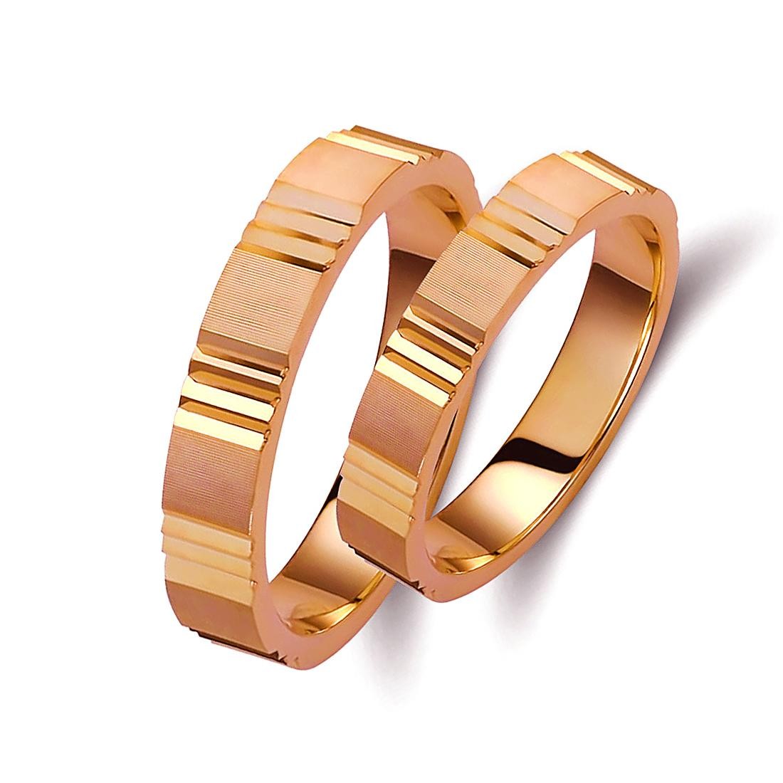 Ζευγάρι βέρες ροζ χρυσό 14 καρατίων. Σχέδιο 033p-pa