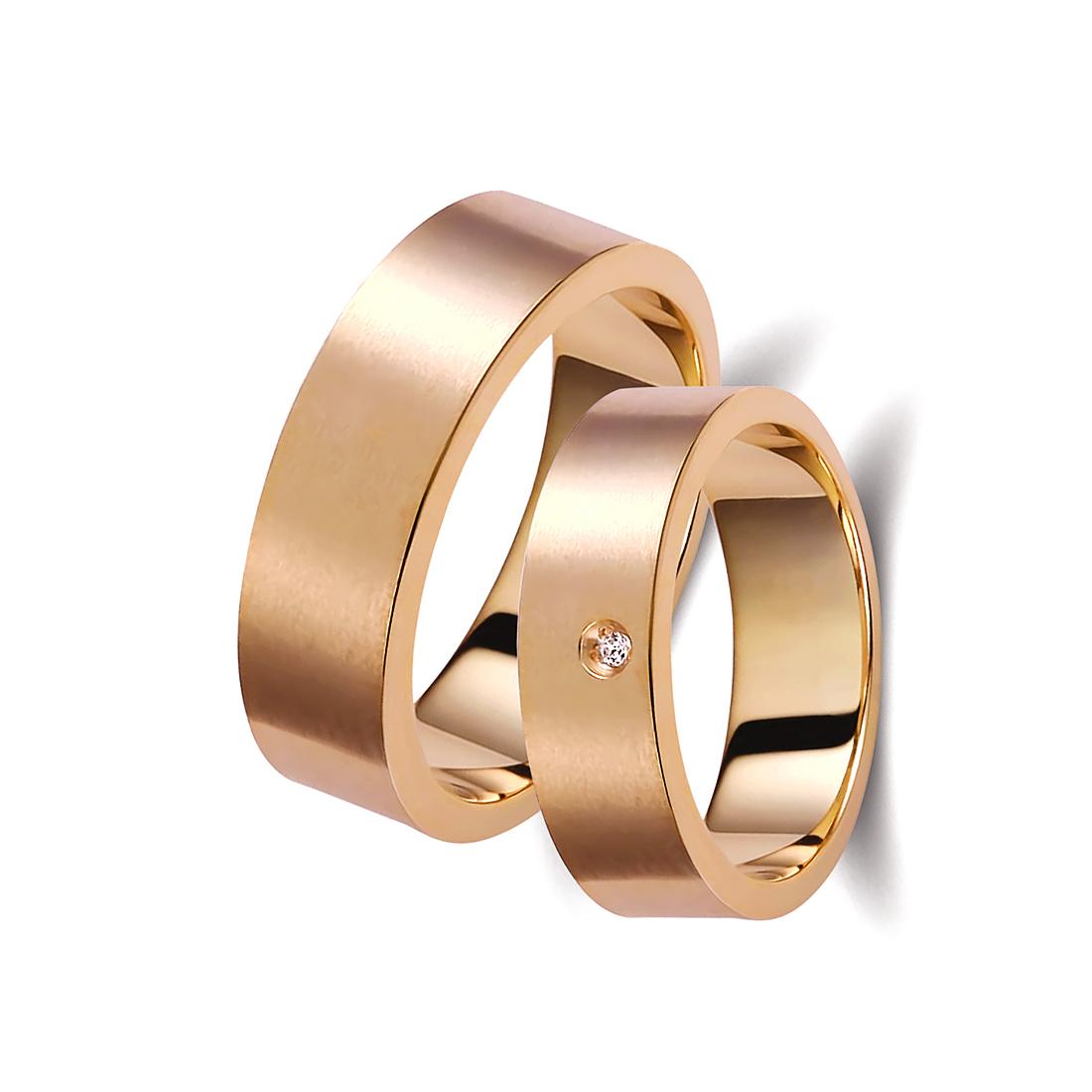 Ζευγάρι βέρες ροζ χρυσό 14 καρατίων.