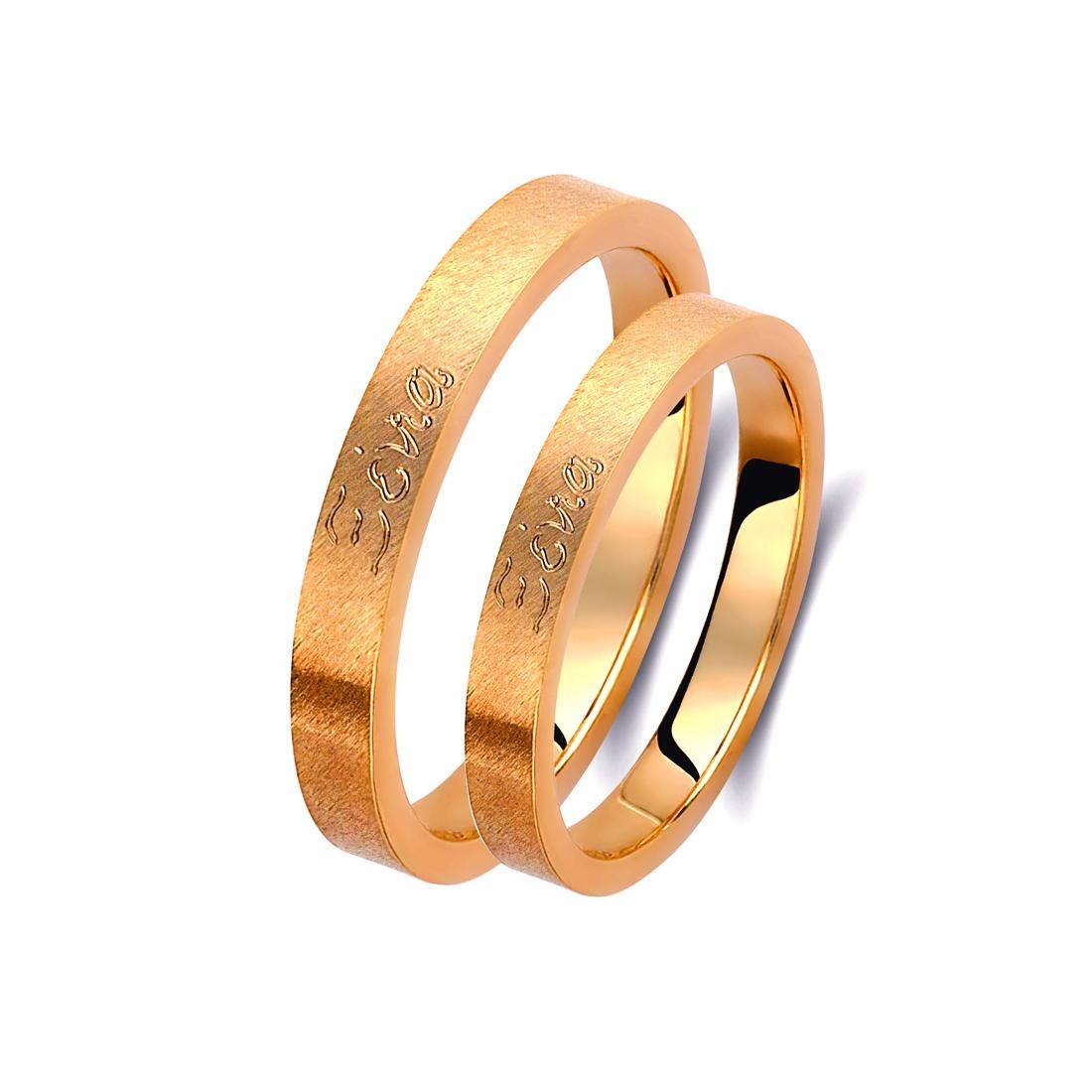 Ζευγάρι βέρες ροζ χρυσό 14 καρατίων. Σχέδιο 397p-pa