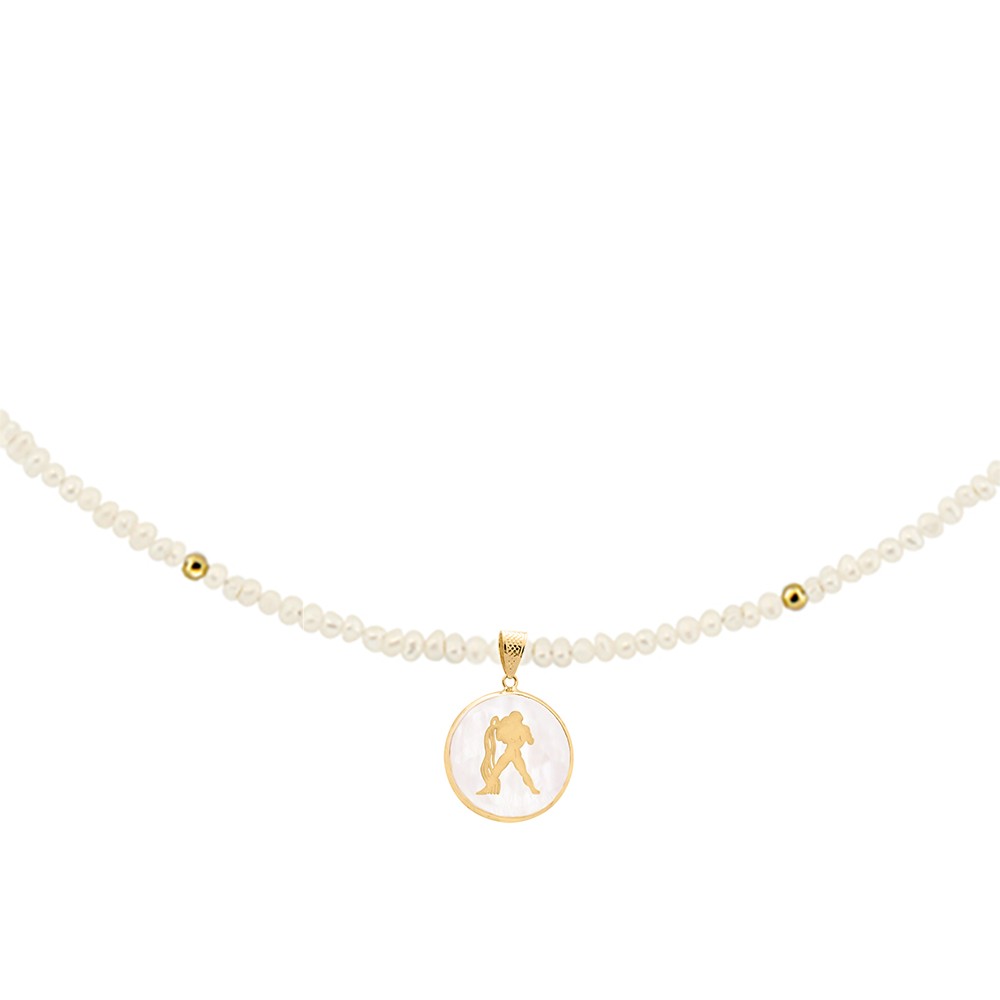 Ζώδιο σε κολιέ με mother of pearl, μαργαριτάρια και μπίλιες από κίτρινο χρυσό 14 καρατίων (585).
