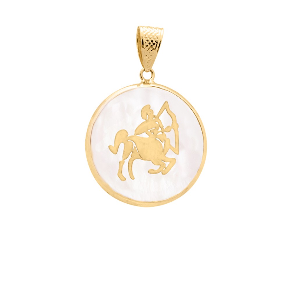 Κρεμαστό μενταγιόν σε σχέδιο στρογγυλό από κίτρινο χρυσό 14 καρατίων (585) με ζώδιο και mother of pearl.